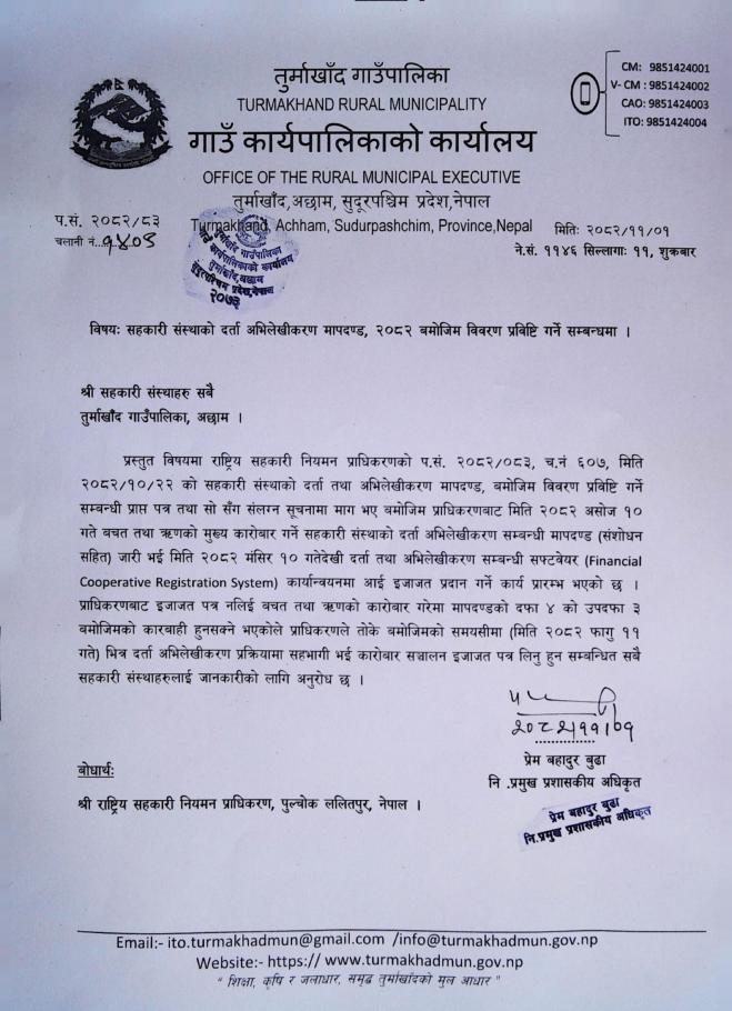 सहकारी संस्थाको दर्ता अभिलेखीकरण मापदण्ड, २०८२ बमोजिम विवरण प्रविष्ट गर्ने सम्बन्धमा।