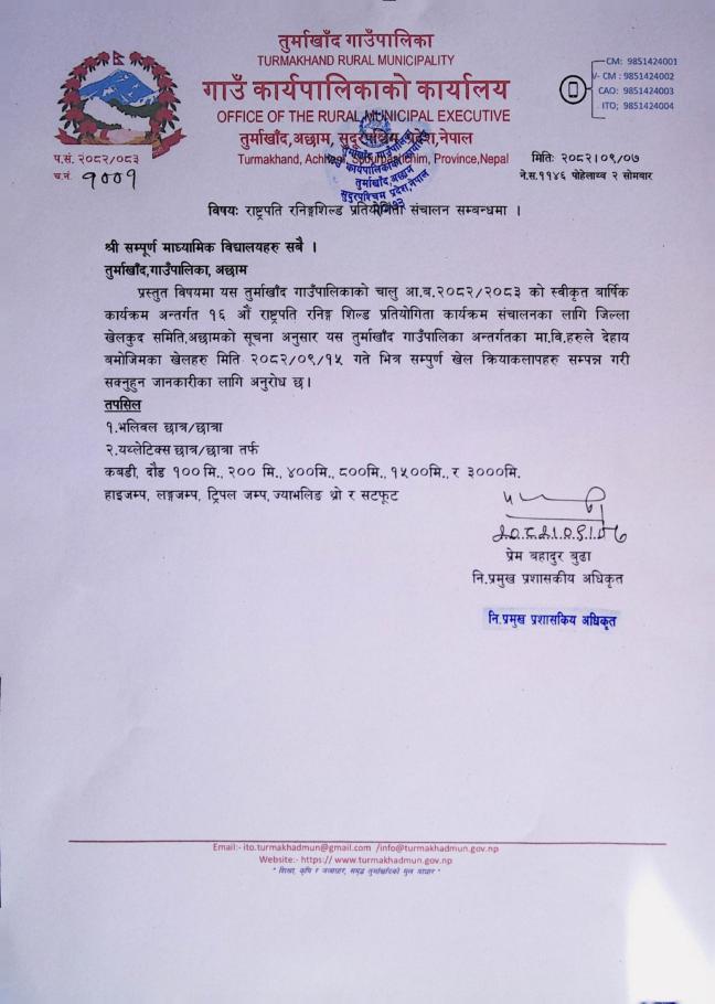 राष्ट्रपति रनिङ्गशिल्ड प्रतियोगिता संचालन सम्बन्धमा ।