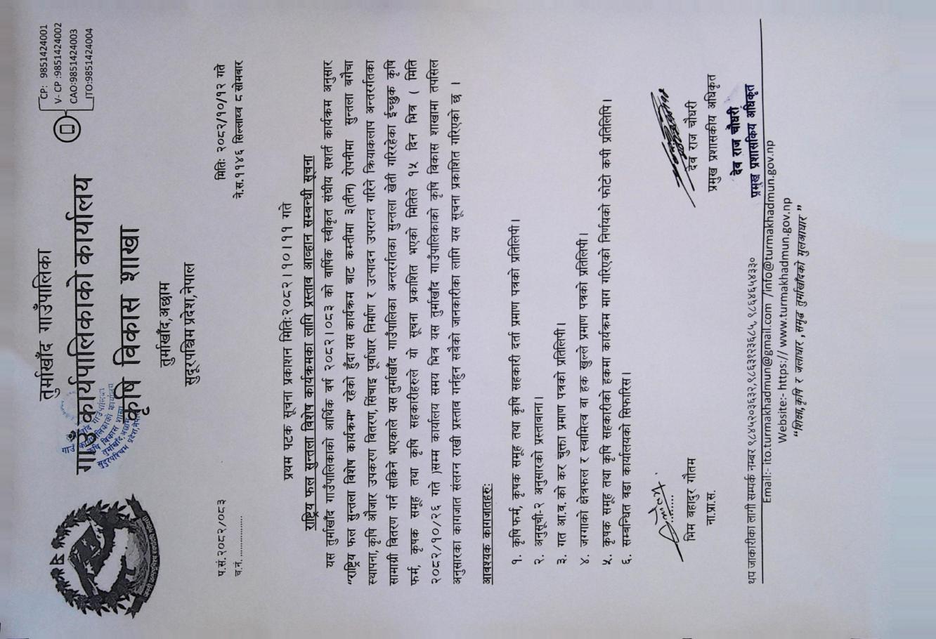 राष्ट्रिय फल सुन्तला विशेष कार्यक्रमका लागि प्रस्ताव आव्हान सम्बन्धी सूचना ।