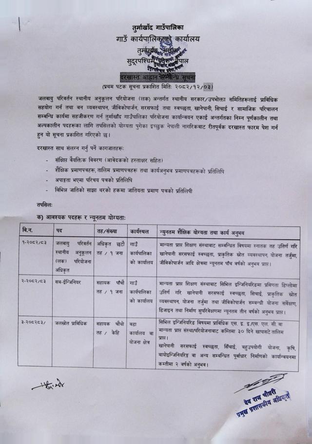दरखास्त आह्नान सम्बन्धि सूचना।( प्रथम पटक सूचना प्रकाशित )